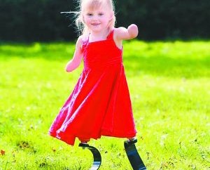 2005年,僅1歲多的小埃莉突患腦膜炎送進(jìn)醫(yī)院,心跳一度暫停跳動(dòng),醫(yī)生甚至向她的父母宣布死亡。就在她的父母以為即將失去愛女時(shí),小埃莉奇跡般地恢復(fù)心跳。然而發(fā)生奇跡的4天后,小埃莉的四肢逐漸壞死,醫(yī)生不得不切除她的四肢。埃莉的母親、現(xiàn)年35歲的麗莎回憶道:“當(dāng)我見到她手術(shù)后的模樣時(shí),我開始悲痛地尖叫起來。因?yàn)樗皇O铝四敲匆稽c(diǎn)點(diǎn)!弊屓梭@訝的是,埃莉的孿生姐姐蘇菲竟主動(dòng)開始幫母親承擔(dān)起照顧妹妹的責(zé)任,給妹妹喂食,陪她玩耍,當(dāng)起了“第二媽媽”。受蘇菲的鼓勵(lì),小埃莉決定堅(jiān)強(qiáng)面對(duì)身體的殘疾。小埃莉穿著假肢的照片轟動(dòng)英國。