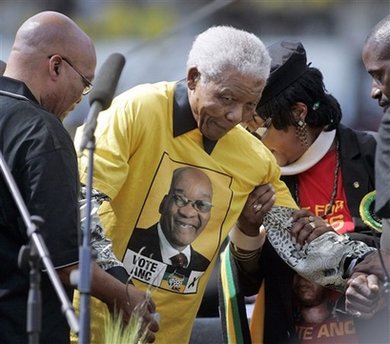 而曼德拉的到場(chǎng),提高了祖馬的競(jìng)選聲勢(shì)。曼德拉發(fā)表了提前錄制的講話(huà)。