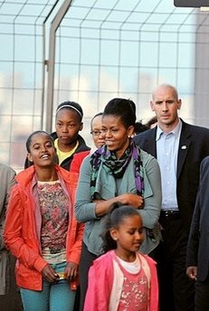 據(jù)臺(tái)灣中廣新聞網(wǎng)報(bào)道,10歲的瑪莉亞及7歲的莎夏這次是以美國(guó)總統(tǒng)家眷的身分第一次出國(guó)訪問(wèn),她們和母親在埃菲爾鐵塔參觀了大約四十五分鐘,游客看到美國(guó)第一家庭都興奮地大叫,并與她們打招呼,米歇爾則是微笑揮手響應(yīng)。