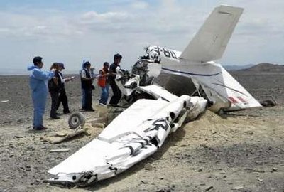 秘魯國家通訊社稱,飛機(jī)上共有3名智利人和4名秘魯人,其中包括一名兒童。警方稱事故發(fā)生在當(dāng)?shù)貢r間11時30分,出事地點(diǎn)靠近古老神秘的游覽勝地納斯卡地畫區(qū)。