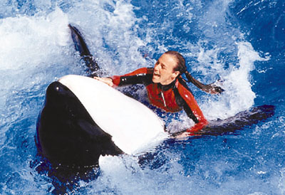 這起殺人鯨襲擊訓(xùn)練員的事件發(fā)生在美國佛羅里達(dá)州奧蘭多的海洋世界。在現(xiàn)場(chǎng)游客駭然的注視之下,名叫提里庫姆的殺人鯨突然躍出水面,將訓(xùn)練員布蘭喬拖入水中。這已經(jīng)是提里庫姆第三次涉及人類死亡的事故。