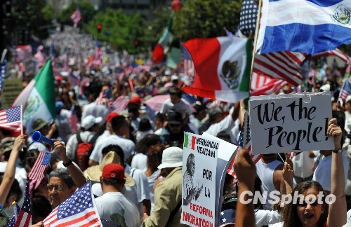 亞利桑那州的新法在洛杉磯引起強(qiáng)烈反應(yīng),眾多拉丁裔團(tuán)體和民權(quán)組織呼吁民眾在五一勞動(dòng)節(jié)走上街頭,抗議這項(xiàng)“惡法”,呼吁奧巴馬政府盡快啟動(dòng)全面移民改革。拉丁裔是洛杉磯地區(qū)第一大族群,約占總?cè)丝诘囊话胱笥,其中墨西哥裔人口更是高達(dá)總?cè)丝诘娜种弧?/p>