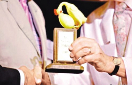 難得的是,雖然乍看之下得獎(jiǎng)似乎并不光彩,主辦單位也表示如果得獎(jiǎng)人覺得受辱,他們會(huì)撤銷提名。但事實(shí)上多數(shù)獲獎(jiǎng)?wù)叨己芨吲d,主辦方還會(huì)請(qǐng)來(lái)諾貝爾獎(jiǎng)得主擔(dān)任評(píng)委。比如去年諾貝爾經(jīng)濟(jì)獎(jiǎng)得主克魯格曼這次就獲邀出席。