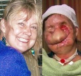 查拉-納什(Charla Nash)一現(xiàn)身節(jié)目,現(xiàn)場(chǎng)觀眾都非常震驚,即使見(jiàn)多識(shí)廣的歐普拉,也坦言從來(lái)沒(méi)見(jiàn)過(guò)這么可怕的面孔,就算是燒燙傷患者都沒(méi)有傷成這種程度──查拉這張臉,已沒(méi)有了眼睛、鼻子、嘴唇,甚至雙手也重殘,10個(gè)指頭全被咬斷。