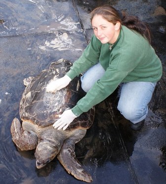 據(jù)報(bào)道,這只估計(jì)約40歲的紅海龜(又稱蠵龜)體重達(dá)9英石(約57.1公斤),長(zhǎng)3英尺,是一只大海龜。它在一次可怕的事故當(dāng)中雙眼失明,從此無(wú)法養(yǎng)活自己,也沒(méi)辦法辨識(shí)方向。此外,這只海龜還屬于瀕危動(dòng)物,同類的數(shù)量不斷減少。