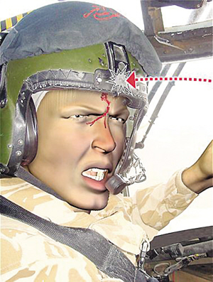 當(dāng)時塔利班分子的攻勢很激烈,直升機盤旋良久才逮到一個交火較少的機會降落下來,不過當(dāng)傷員陸續(xù)登上直升機時,對手的襲擊又開始活躍起來。當(dāng)傷員接載完畢,伊恩冒著彈雨再起飛時,一粒子彈剛巧擊中他的頭盔前部一塊用于安裝夜視鏡的金屬架,子彈從這里穿透了頭盔,射中他的眉心。鮮血從伊恩的額頭涌了出來,一直流到他的眼睛。此時更多的子彈射了進來,支奴干的控制臺被擊中,穩(wěn)定系統(tǒng)無法工作。但伊恩仍然努力控制直升機,繼續(xù)飛行了大約8分鐘,順利降落基地。空軍消息人士說,如果子彈射低一毫米,又欠缺這位機師的駕駛技術(shù),機上所有人相信無機會生還。