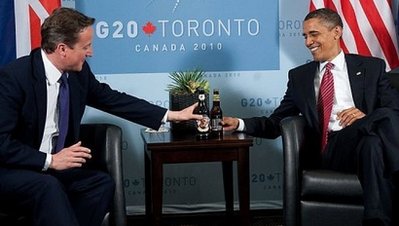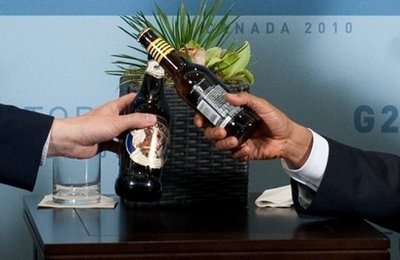 中新網(wǎng)6月27日電 據(jù)臺(tái)灣中廣新聞網(wǎng)報(bào)道,美國(guó)總統(tǒng)奧巴馬及英國(guó)首相卡梅倫周末趁著在加拿大多倫多出席高峰會(huì)時(shí),履行賭約,互請(qǐng)啤酒。
