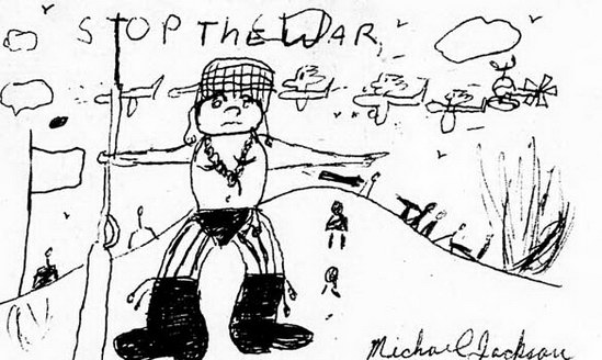 1988年杰克遜在參觀羅馬時(shí)看到一個(gè)小男孩,隨即迅速畫(huà)下了他的臉龐。當(dāng)回到下榻酒店他和朋友說(shuō):“看他的眼神,和我多像啊”。然后他還在旁邊署上:邁克爾·杰克遜,1988,于意大利。