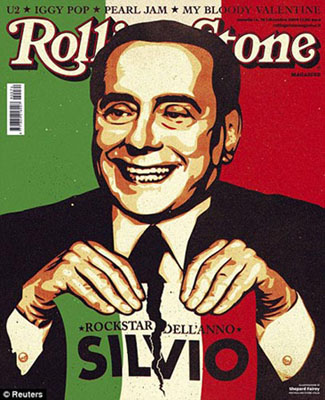 因生活方式及作風(fēng)極像一名搖滾巨星,意大利總理貝盧斯科尼日前被世界知名搖滾樂雜志《滾石》評為2009“年度搖滾明星”,并且成為該雜志的封面人物。