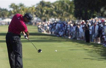 報道稱,成群結(jié)隊的觀眾擁擠在狹小的草地上,爭先恐后的目睹“老虎”伍茲在練習(xí)中看似漫不經(jīng)心的揮桿。
