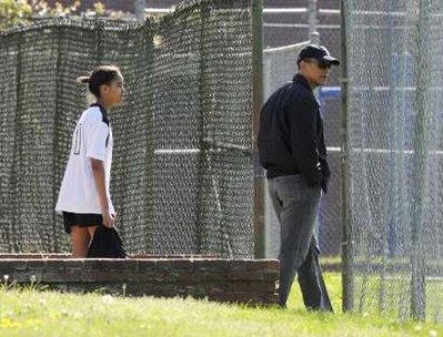 盡管奧巴馬全家都知道搬進白宮之后,就不能隨心所欲地在公開場合出入,但是他們還是努力讓兩個女兒過著正常生活。今年1月,奧巴馬夫婦花了一個周末上午,觀看小女兒薩莎在馬里蘭州的切維契斯社區(qū)中心打籃球。17日奧巴馬又輕車簡從地變身為大女兒的球迷,跟著一群穿著足球裝的女孩握手聊天。