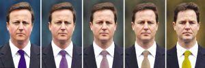 據(jù)英國媒體17日報道,人們發(fā)現(xiàn),新當選的英國首相卡梅倫和他的副首相克萊格實在太過相似,簡直像雙胞胎。難怪英國選民們在投票時,越來越難以分清卡梅倫和克萊格了。有人將他們的照片合成了一個人物,還取了個新名字——“克萊格倫”。