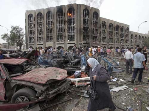 爆炸針對巴格達省政府大樓和伊司法部大樓,現(xiàn)場距離設(shè)于曼蘇爾酒店內(nèi)的中國駐伊大使館及新華社僅50米,由于爆炸威力強大,使館門窗幾乎全部被毀,天花板脫落,兩名酒店中國廚師受傷,使館和新華社無人傷亡。