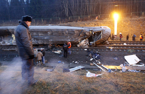 中新網(wǎng)11月28日電 莫斯科時(shí)間27日21點(diǎn)34分,由莫斯科開往圣彼得堡的166次“涅瓦特快號”客運(yùn)列車的幾節(jié)車廂發(fā)生脫軌事故,造成重大人員傷亡。此前俄塔社援引俄緊急情況部的消息說,事件已造成39人死亡,但據(jù)俄新網(wǎng)報(bào)道,俄羅斯緊急情況部新聞局局長切爾諾娃反駁了這一消息,稱官方數(shù)據(jù)仍是25人死亡,95人受傷。