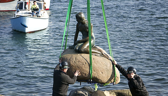 2009年3月12日,哥本哈根市議會投票同意讓“小美人魚”銅像進駐上海世博會丹麥展區(qū),此舉推動了丹麥與中國的文化交流。據(jù)悉,中國藝術(shù)家將通過一個視頻裝置,對“小美人魚”從哥本哈根到上海的“旅途”進行全程監(jiān)控與錄像。上海世博會期間,每當(dāng)夜幕降臨,“小美人魚”的美妙之旅就會躍然于丹麥館內(nèi)的大屏幕上。