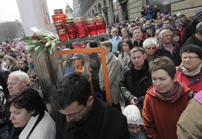 許多人并不是總統(tǒng)卡欽斯基的支持者,但還是想來到這里表達(dá)自己的哀悼。
