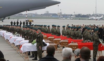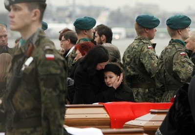 據(jù)報道,14日,載有30名遇難者靈柩的飛機(jī)抵達(dá)波蘭;15日,又有飛機(jī)搭載34名遇難者靈柩飛抵波蘭華沙一間軍用機(jī)場。這些被運回故鄉(xiāng)的遇難者當(dāng)中,包括波蘭流亡總統(tǒng)卡丘羅夫斯基的遺體。