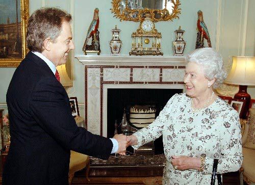 伊麗莎白Ⅱ世,是一位年近84歲、身材矮小且滿頭銀發(fā)的老婦。但每一個即將成為首相的人都需要畢恭畢敬的在金色的大廳等候著她的授權(quán)。在位60年,伊麗莎白Ⅱ世已親歷了11任首相的變遷,從丘吉爾到戈登•布朗。