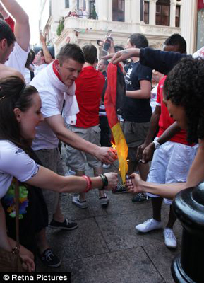 中新網(wǎng)6月28日電 據(jù)英國(guó)媒體報(bào)道,在英格蘭三獅軍團(tuán)慘敗給德國(guó)新戰(zhàn)車后,一名德國(guó)隊(duì)支持者遭遇聚集在倫敦萊切斯特廣場(chǎng)觀戰(zhàn)的英格蘭球迷的圍堵。
