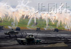 演習(xí)以打擊登陸敵軍為設(shè)想前提,動(dòng)用了約2400名自衛(wèi)隊(duì)員、約80輛90式坦克和裝甲車等車輛、約25架反坦克直升機(jī)等飛機(jī)、約40門(mén)火炮。