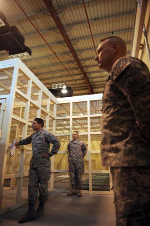 目前,巴格拉姆基地多數(shù)的恐怖疑犯都被囚于一個(gè)帳篷拘留所中,但在本月內(nèi)將會(huì)有六百四十名囚犯得以遷往環(huán)境較佳的帕爾旺拘留所。掌管這座“新關(guān)塔那摩”的美軍律師馬克.馬丁斯指,關(guān)塔那摩灣監(jiān)獄和伊拉克的阿布格里卜監(jiān)獄都被指違反法律,但帕爾旺拘留所將會(huì)被視為一座合理對(duì)待囚犯的監(jiān)獄,因?yàn)樗鼘?huì)秉持遵守法治和合理程序的兩大原則,并將致力協(xié)助囚犯在出獄后重新融入社會(huì)。他說這是美國(guó)在對(duì)待恐怖疑犯上的“真正進(jìn)步”,而監(jiān)獄的運(yùn)作將會(huì)具有透明度。