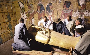 考古人員1922年在埃及南部金斯河谷墓穴發(fā)現(xiàn)圖坦卡蒙法老木乃伊。當(dāng)時(shí)木乃伊身上遍鋪珠寶飾物,還有一張做工精美的金面具。研究人員對(duì)圖坦卡蒙法老和其他數(shù)具木乃伊實(shí)施DNA檢測(cè)和電腦斷層掃描后認(rèn)定,圖坦卡蒙的祖父是阿蒙霍特普法老三世,父親是埃赫那頓法老,后者因改革古埃及眾神崇拜傳統(tǒng)、強(qiáng)制推行太陽(yáng)神“一神獨(dú)尊”而著名。