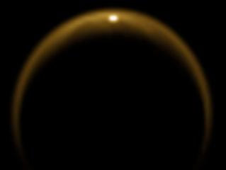 由于土衛(wèi)六上空厚厚的大氣層的干擾,土衛(wèi)六表面所反射的太陽(yáng)光大多數(shù)都被遮蔽!翱ㄎ髂崽(hào)”探測(cè)器也是在偶然間拍下了這張罕見(jiàn)的照片。照片拍攝于2009年7月8日。