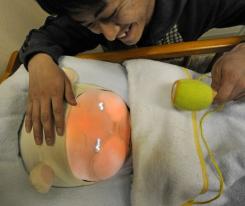 中新網(wǎng)3月10 日電 據(jù)外電10日?qǐng)?bào)道,日本近日推出一款新型機(jī)器人“嬰兒”。這個(gè)被昵稱為“太郎”的機(jī)器嬰兒在人們輕輕搖擺或者撫摸它時(shí),會(huì)發(fā)出咯咯的笑聲,并做出搖手晃腳的可愛姿態(tài),但它也會(huì)像真正的嬰兒那樣發(fā)出任性的哭聲。