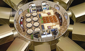 地堡內設有數十間臥室,共可容納200人。值得一提的是,地堡內平板電視、寬帶網絡、跑步機、可自我凈化的淋浴器等生活設施一應俱全,此外還有一間醫(yī)院、牙科診所、儲備有1年糧食的超級廚房以及DNA儲藏庫。顯然,維希諾希望它不僅是一個臨時庇護所,還是一艘創(chuàng)世紀的諾亞方舟!