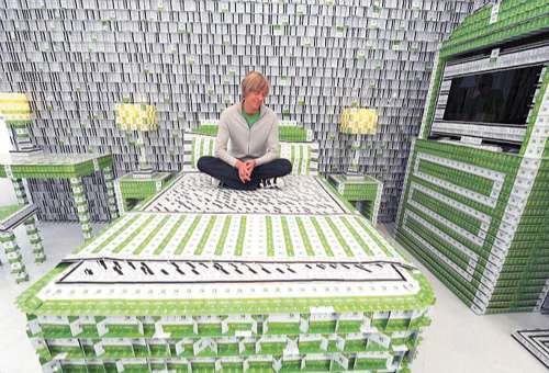 中新網(wǎng)9月19日電 據(jù)香港《大公報(bào)》報(bào)道,因建造出全球最大紙牌建筑物而被列入《吉尼斯世界紀(jì)錄大全》的美國(guó)人布賴恩.伯格在紐約建造了一家“鎖匙卡酒店”,里面除了地板和天花板之外,一切都是由總數(shù)20萬張的塑料酒店鎖匙卡建成。