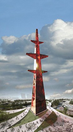 其中一個初步設計顯示一座四百英尺高的建筑物,外形酷似一個由印第安族圖騰柱和標塔組成的十字架。