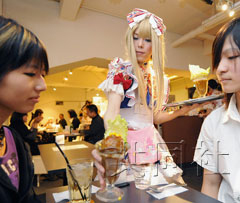 共同社在報(bào)道中提到了東京秋葉原的“云雀亭”女仆咖啡店。這些“女仆”服務(wù)員全部為身穿女裝的男性。他們頭戴假發(fā)、身著褶邊裙、帶著靚麗的妝容接待顧客。
