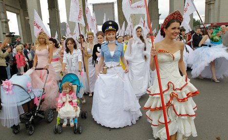 報道稱,在俄羅斯展覽中心外,“軍事新娘”、“哥特新娘”甚至是“護士新娘”讓眾路人應(yīng)接不暇。