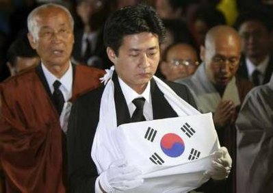 按照既定議程,盧武鉉遺體告別儀式結束后,靈車車隊向首爾廣場進發(fā),下午一時舉行路祭,據(jù)報道,有50萬群眾參加。