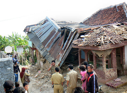 地震的威力震撼了整個(gè)爪哇島,從西岸到東岸都可以感覺(jué)得到。蘇加武眉鎮(zhèn)居民赫尼.馬里亞尼說(shuō):“地震時(shí),我家里強(qiáng)烈震撼,持續(xù)近一分鐘。我抓著孩子們就往外跑,我看見(jiàn)人們都非常恐慌,女人尖叫,兒童哭泣!