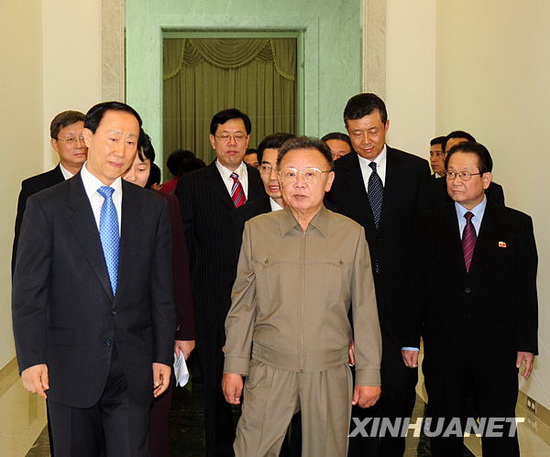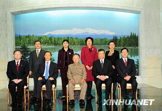 朝鮮勞動(dòng)黨總書記、國(guó)防委員會(huì)委員長(zhǎng)金正日8日在咸鏡南道咸興市會(huì)見了正在朝鮮進(jìn)行友好訪問(wèn)的中共中央對(duì)外聯(lián)絡(luò)部部長(zhǎng)王家瑞一行。