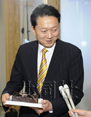 鳩山笑容滿面地說:“對(duì)能收到這樣甜蜜的禮物表示感謝!被仡欉^去的一年,他又苦笑著說:“雖然自己盡心盡力了,但得不到國(guó)民理解的時(shí)候只能承受痛苦!