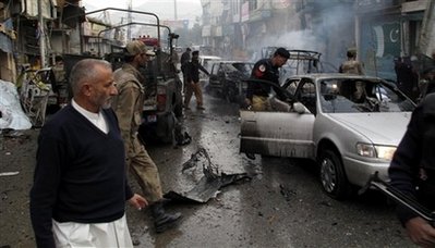 中新網2月23日電 據(jù)美聯(lián)社報道,巴基斯坦西北部斯瓦特山谷地區(qū)首府閔格拉(Mingora)鬧市區(qū)22日發(fā)生針對巴安保部隊的自殺式爆炸襲擊,造成至少8人死亡,37人受傷。