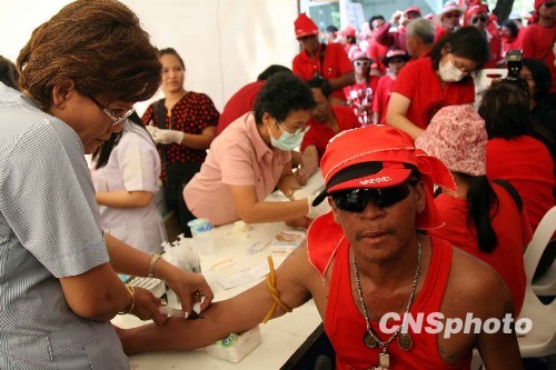 中新網(wǎng)3月16日電 據(jù)泰國《曼谷郵報(bào)》網(wǎng)站報(bào)道,泰國“反獨(dú)裁民主聯(lián)合前線”領(lǐng)導(dǎo)人納塔烏特(Nattawut Saikua)16日上午表示,紅衫軍將于當(dāng)?shù)貢r(shí)間16日下午3點(diǎn)到4點(diǎn)之間,將示威民眾的鮮血潑灑到總理府的門口,而不是原來宣布的6點(diǎn)。