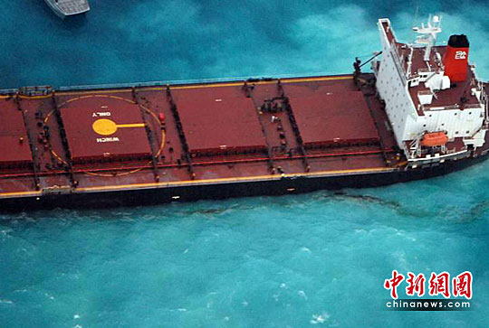 中新網4月4日電 據法新社消息,中國一艘運煤船在澳大利亞大堡礁附近擱淺,隨后船體發(fā)生漏油。