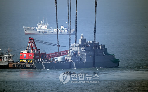 韓國軍方有關人士表示:“沉重的門鈕和煙筒能被損毀丟失,表示當時受到了強力沖擊!薄翱梢詫㈤T鈕損毀的沖擊,一般可以對乘務官兵造成昏厥。”