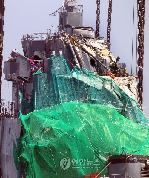 由韓國軍民聯(lián)合組成的天安艦打撈組,在沉艦20天和29天后成功打撈了艦尾和艦首。104名官兵當(dāng)中58名獲得拯救,失蹤6人,40人罹難。