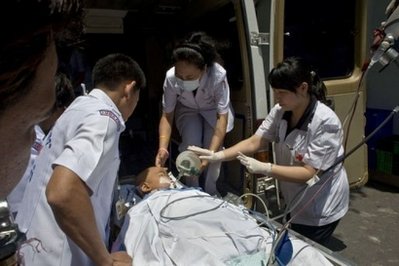 中新網5月1日電 據(jù)“中央社”報道,泰國反政府紅衫軍29日闖入朱拉醫(yī)院搜查,以為軍人鎮(zhèn)守大樓準備驅離行動,紅衫軍領袖30日致歉并清出部分路障供救護車與病人進出,但已有逾1000名病人轉院。