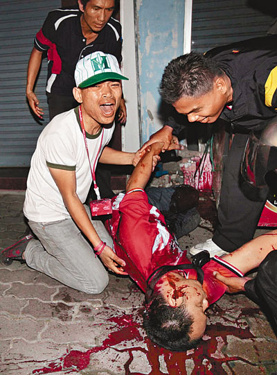 納塔武對記者說:“阿披實已為內戰(zhàn)揭開序幕了。我們緊急要求政府撤軍,停止一切暴力行為。如果阿披實不同意;,我不知道我們能否活過今晚。我們希望阿披實不想要戰(zhàn)爭!