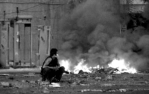 被殃及的還有當(dāng)?shù)厝A商。在水門商場(chǎng)經(jīng)商的廣東人阿華17日下午對(duì)記者抱怨,她的店鋪已經(jīng)關(guān)了4天了,還不知道什么時(shí)候開業(yè)!氨緛硖﹪(guó)政府之前說今天可以營(yíng)業(yè),但我們又被告知推遲!卑⑷A說,她和弟弟還有兩個(gè)親戚住在距離水門商場(chǎng)500多米遠(yuǎn)的地方,不敢出門上街,因?yàn)橥膺叢贿h(yuǎn)處就是政府劃定的危險(xiǎn)區(qū),幸好自己家儲(chǔ)存了雞蛋、大米、方便面等食物,還能再堅(jiān)持個(gè)2-3天。