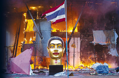 中新網(wǎng)5月20日電 據(jù)香港《文匯報》報道,泰國軍方19日清場,希望將陷入內(nèi)戰(zhàn)邊緣的曼谷拯救出來,雖然紅衫軍節(jié)節(jié)敗退,但有激進分子未肯罷休,四處放火,電視臺、股票交易所、電力公司、幾間銀行、商場戲院都遭殃,商場和便利店亦成為搶掠目標。據(jù)報曼谷有27處地方起火,泰國最大的商場Central World、Siam Square和Siam Paragon三大購物中心被縱火,其中Central World燒通頂,據(jù)報快將倒塌。
