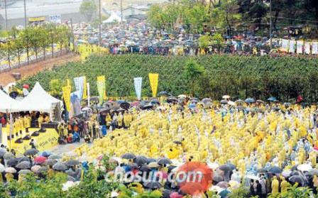 據(jù)報(bào)道,當(dāng)天,在舉行盧武鉉逝世一周年追悼?jī)x式的峰下村,大雨如注,然而前來追悼的客人仍然絡(luò)繹不絕。