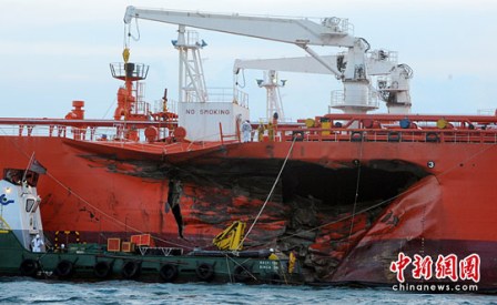 馬來西亞海事執(zhí)法局表示,載有6.2萬噸原油的油輪左舷艙被劃出一道10米長(zhǎng)的裂縫,已被拖往樟宜港維修,而肇事貨輪仍停泊在撞船現(xiàn)場(chǎng)。撞船地點(diǎn)位處繁忙的商業(yè)航道。新加坡是全球最繁忙的港口之一,亦是亞洲的石油貿(mào)易中心。