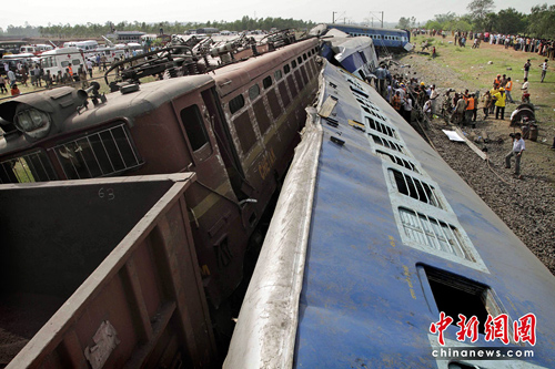 中新網(wǎng)5月29日電 當(dāng)?shù)貢r(shí)間28日凌晨1時(shí)30分,在印度東部西孟加拉邦西米德納布爾附近,一輛高速行駛的旅客列車(chē)遭遇武裝組織襲擊,導(dǎo)致13節(jié)車(chē)廂脫軌,其中4節(jié)車(chē)廂又與對(duì)面駛來(lái)的貨運(yùn)列車(chē)相撞。據(jù)當(dāng)?shù)鼐奖硎,目前襲擊造成的死亡人數(shù)已達(dá)至少80人,超過(guò)200人受傷。死傷數(shù)字還可能進(jìn)一步上升。