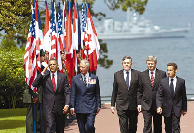 會(huì)面后,4人之后會(huì)一同前往美軍墓園,與英國(guó)首相布朗、英國(guó)王儲(chǔ)查爾斯和加拿大總理哈珀會(huì)合。奧巴馬在墓園內(nèi)向包括200名美國(guó)退役軍人的9000人發(fā)表講話。